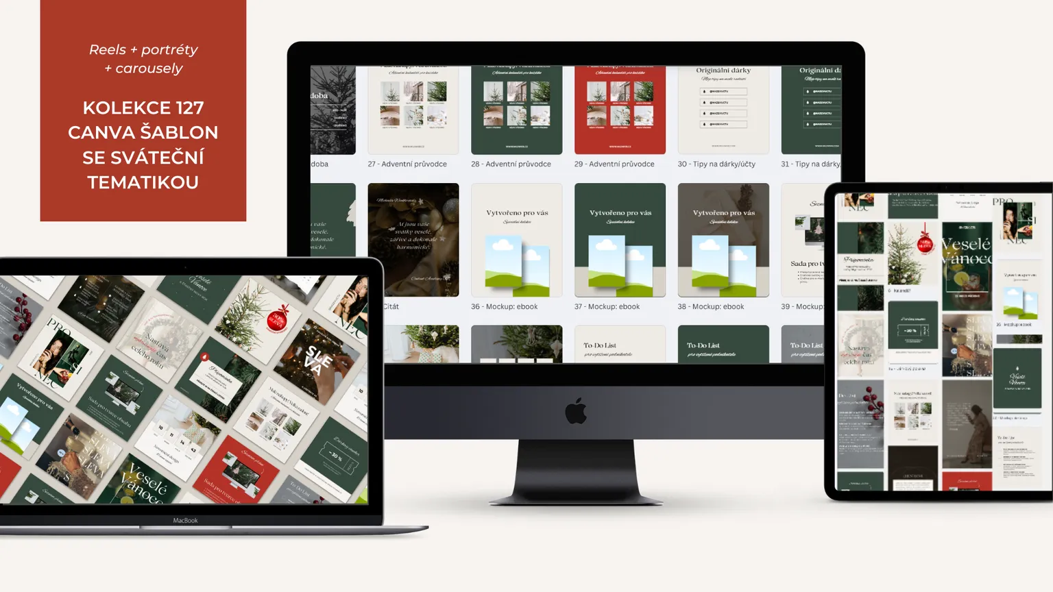 127 předpřipravených šablon se sváteční tématikou a obsahem pro prodej výrobků i služeb - Reels/Stories, Portréty, Carousely.